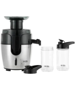 Gran potencia de 700 watts. Dos velocidades. Cuerpo, filtro y cuchillas de acero inoxidable (mayor grado de proteccion contra el oxido). Boca ancha de 65mm para introducir hasta una manzana entera. Brazos de plastico reforzado que proveen un seguro sistema de bloqueo Moderno sistema que permite que la boca de salida de jugo pueda rotar o moverse en cualquier Angulo. Capacidad contenedor de pulpa de 700ml. Recipientes y accesorios removibles y lavables Incluye dos botellas SPORT-TO-GO de material ultra-resistente (TRITAN) para llevarlos contigo a cualquier actividad outdoor. Son libres de BPA.