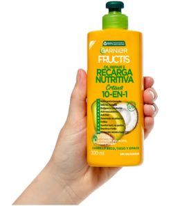 Garnier Fructis 10 en 1 Recarga Nutritiva combina 3 aceites + proteína de fruta en su nueva crema para brindarte 10 beneficios en un solo producto: