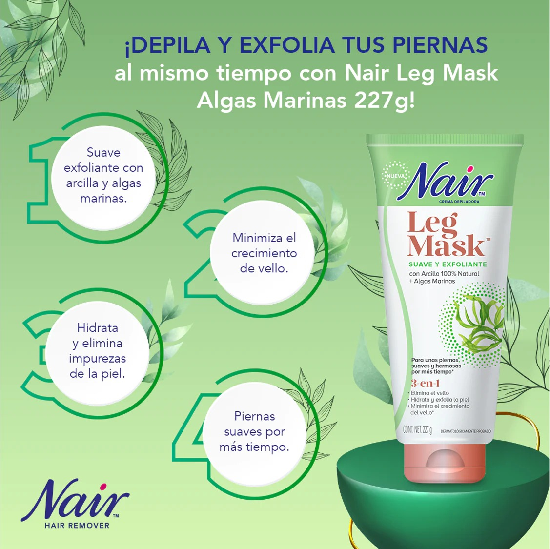 Crema Depilatoria de Piernas Leg Mask Algas 3en1 227g Nair