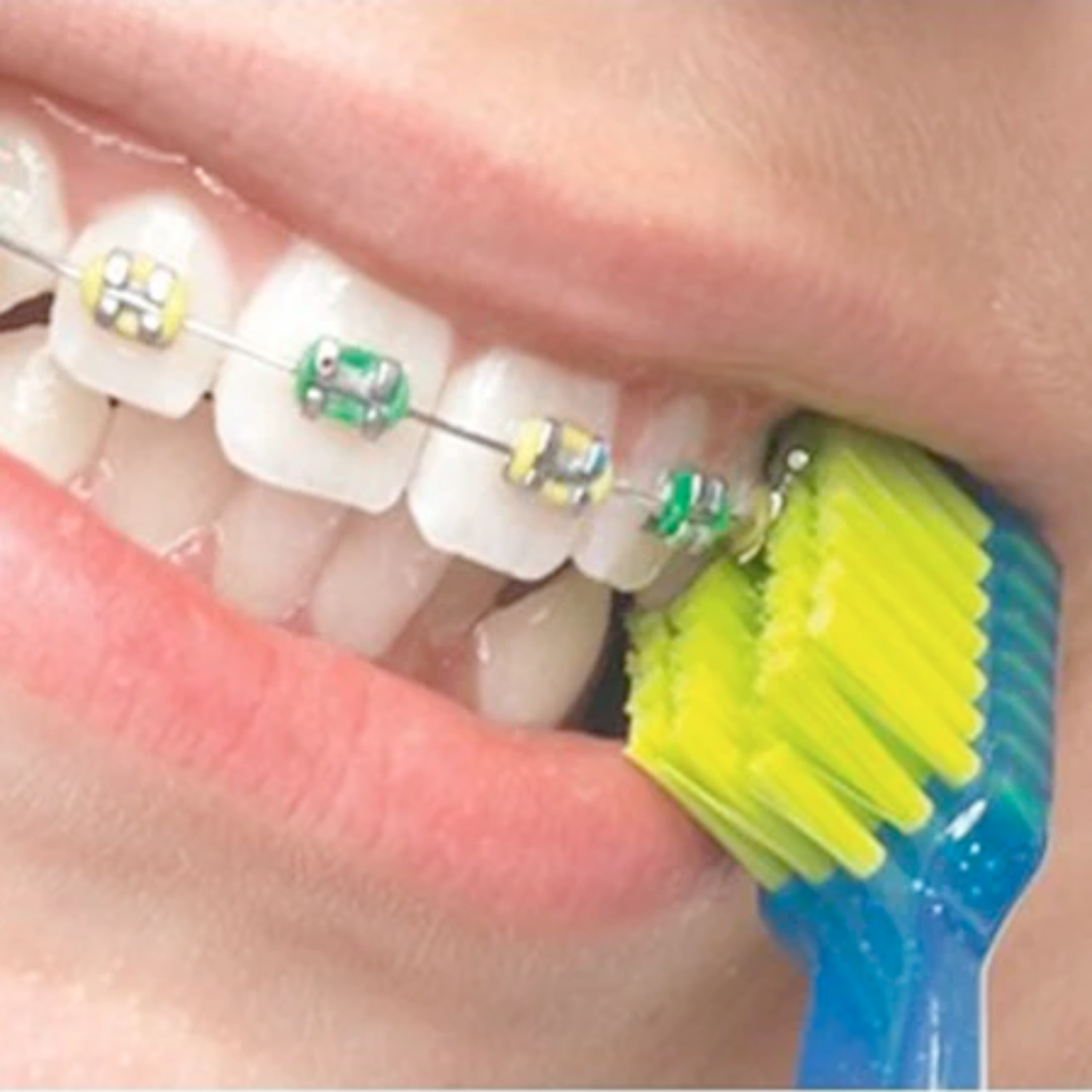 Cuidado especial para sus aparatos ortodónticos 5.460 filamentos en la cabeza del cepillo – corte ligeramente más corto en el medio para envolver perfectamente los frenos y cierres… y limpiar más eficazmente. El mejor cuidado diario para sus aparatos ortopédicos.