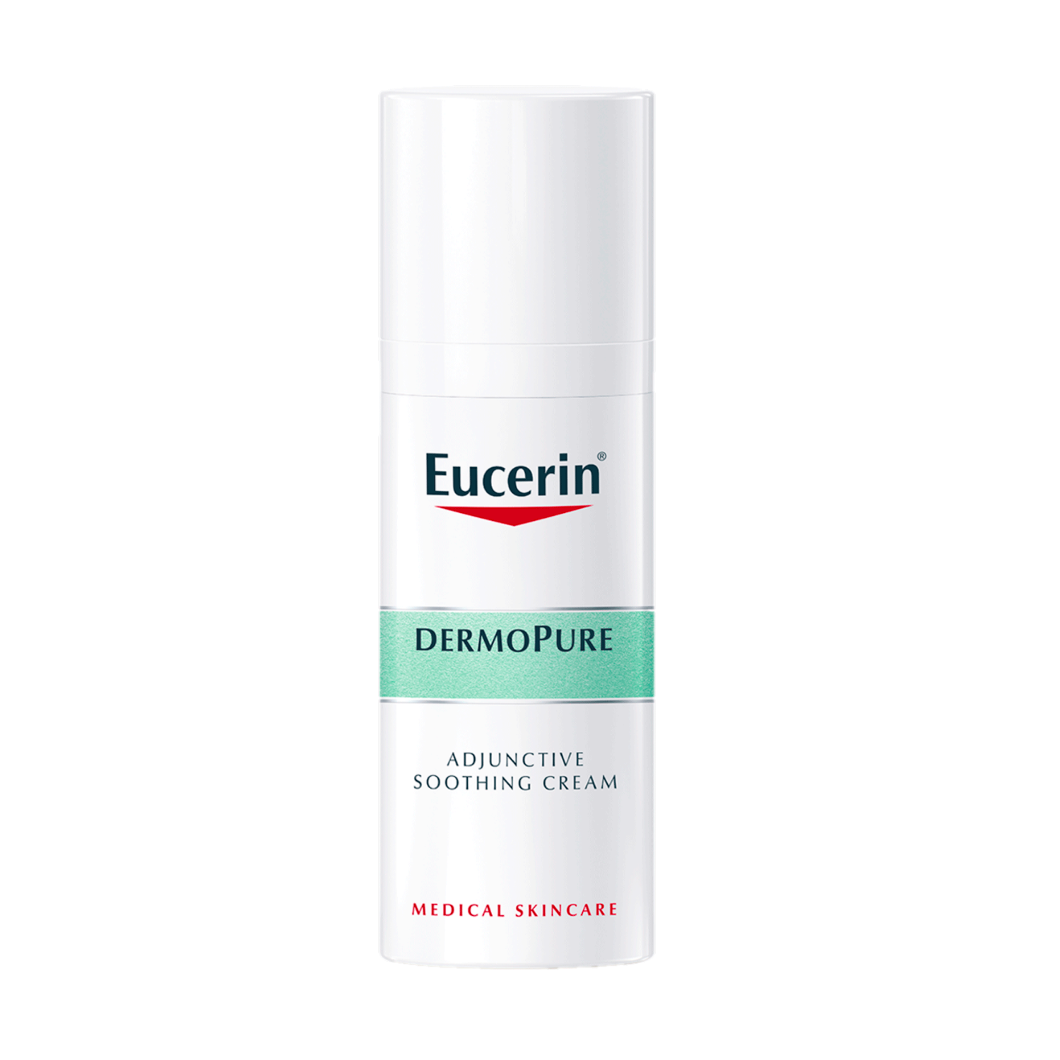 Eucerin DermoPURE Bálsamo Calmante Complementario, crema facial que suaviza e hidrata intensamente la piel sometida a tratamiento medico para el acné.