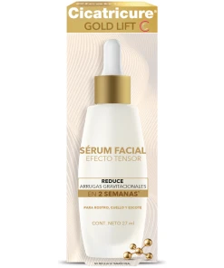 El nuevo serúm facial de Cicatricure Gold actúa sobre arrugas gravitacionales y líneas de expresión, su fórmula concentrada con PÉPTIDOS CON ORO, CALCIO y SILICIO actúa con efecto lifting y se absorbe rápidamente, permitiendo una reparación más profunda de la piel en menos tiempo. Al instante su EFECTO TENSOR mejora la ELASTICIDAD y HUMECTACIÓN de la piel y conforme pasan los días INCREMENTA la FIRMEZA, dando como resultado un rostro más definido. En sólo 2 semanas esculpe y reafirma la piel y reduce la aparición de arrugas gravitacionales. En 6 semanas 90% de las mujeres notaron su piel visiblemente más joven. Aplícalo sobre rostro, cuello y escote perfectamente limpios. Dermatológicamente Testado.